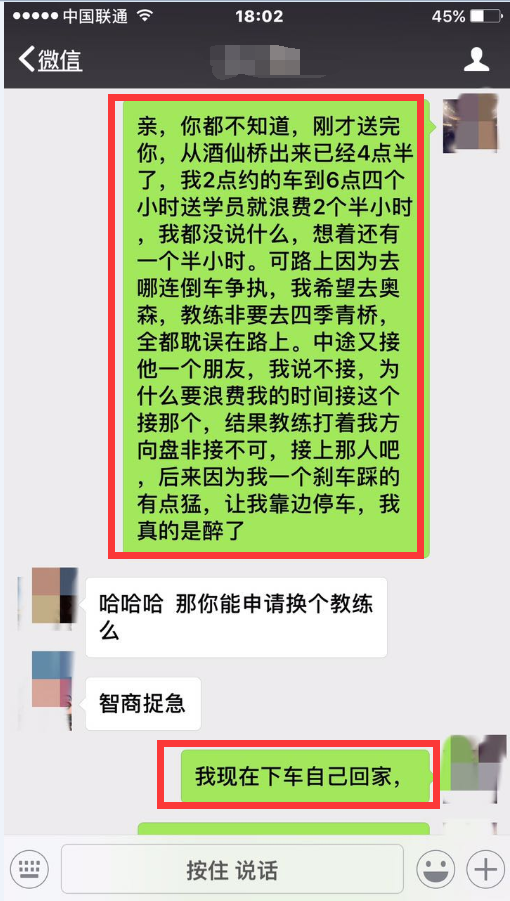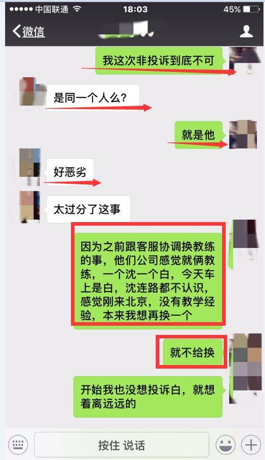 先说我为难他人,可笑!一个非礼我,一个没有教学经验,我合理要求换教练,成了我为难他人?